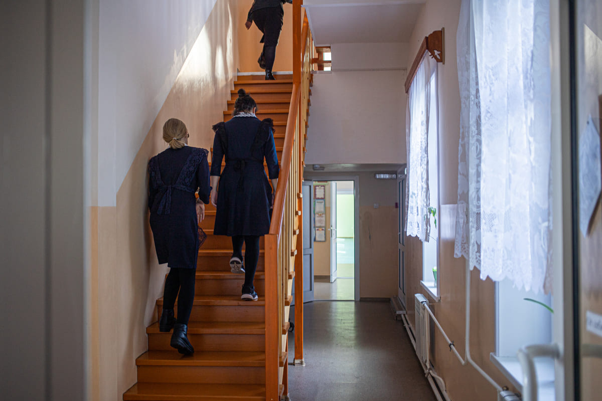 Здесь работают десять учителей, по одному на каждых четверых детей: они преподают по несколько предметов. Учить английскому языку всё равно некому, говорит директор, но желающих переехать в это село она не нашла.