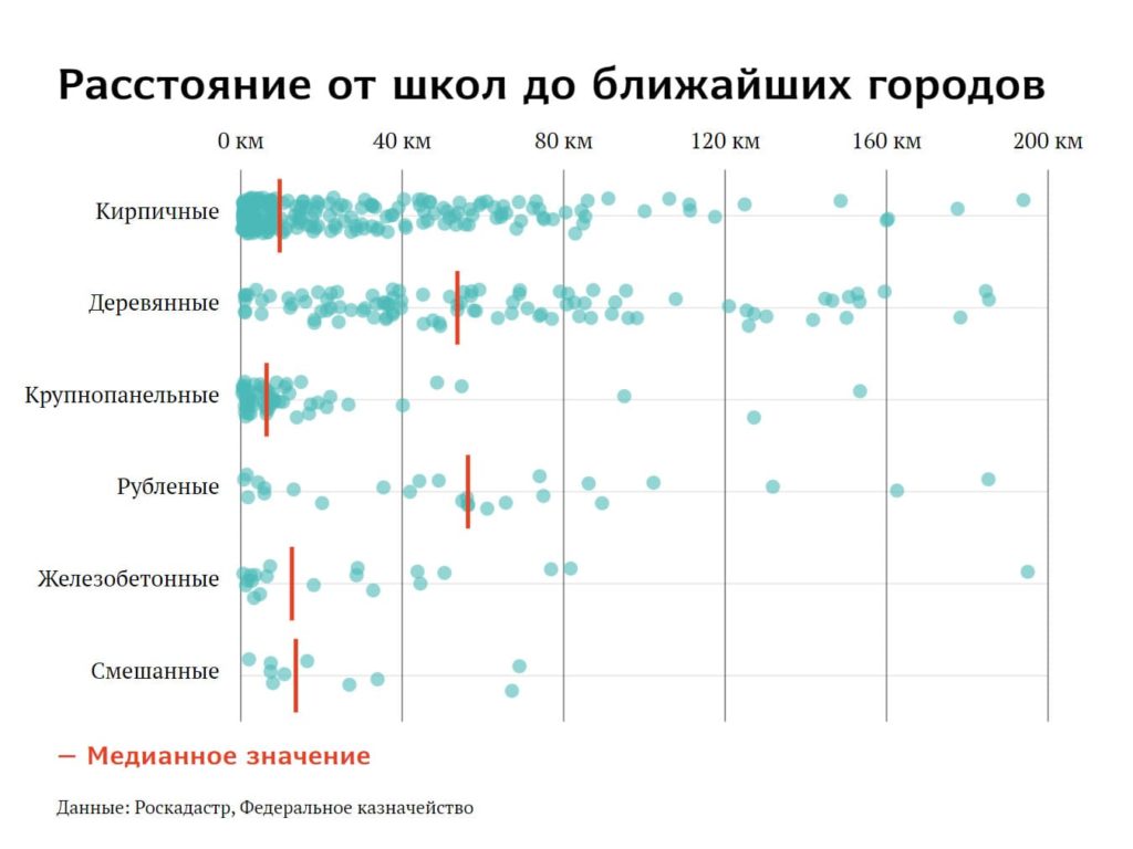То, что школа деревянная, почти всегда значит, что она в плохом состоянии, говорят авторы исследования Высшей школы экономики об учебных заведениях на селе. Исследователи объясняют, что здания из дерева быстрее ветшают и обладают повышенной пожароопасностью. В среднем по России в сёлах 15% школ деревянные, а в городах таких зданий 3%, говорится в том же исследовании.