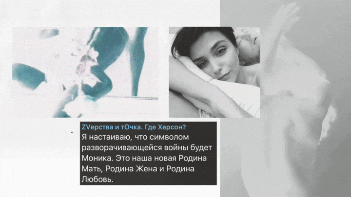 «Тогда мне он показался вполне адекватным, а когда началась СВО, я к нему зашла и не поняла — он что, женился? — вспоминает Елена. — Фотки какие-то странные, будто фотошоп. Я думала, они с женой просто угорают, а оказалось, что на фотографиях девушка, Кристина — я ей тоже писала, она знает, что он использует её фото и видео, вставляет её везде, в том числе и на эротических фото. Она в шоке и не знает, что делать».