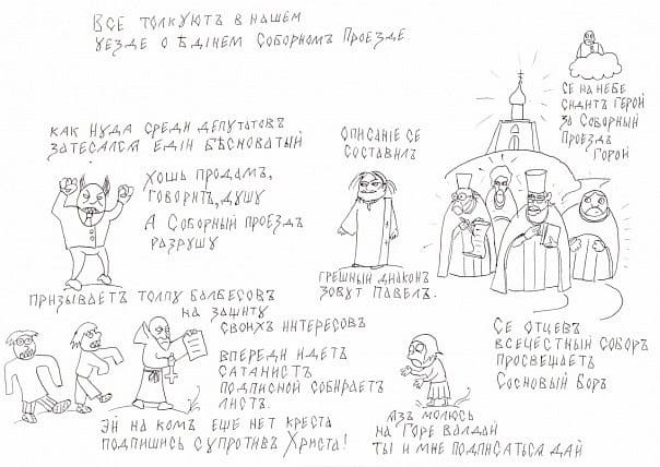 В память об этом эпохальном событии Шульженок нарисовал карикатуру, которую сохранил собеседник: