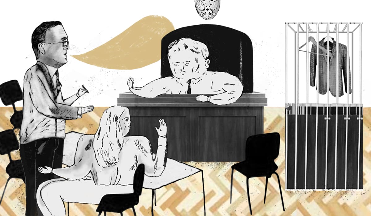 Заседания суда шли в зале три на пять метров, где для слушателей поставили всего шесть стульев. Они почти всегда были заняты прессой и местными активистами. Ближе к концу процесса из зала убрали один стул и вешалку, и присутствующим пришлось использовать под гардероб пустующую клетку подсудимого. Разбирая куртки после заседаний, люди в шутку желали друг другу не задерживаться за решеткой.