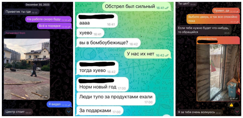 Сообщения белгородцев близким и друзьям во время обстрела Белгорода 30 декабря 2023 года