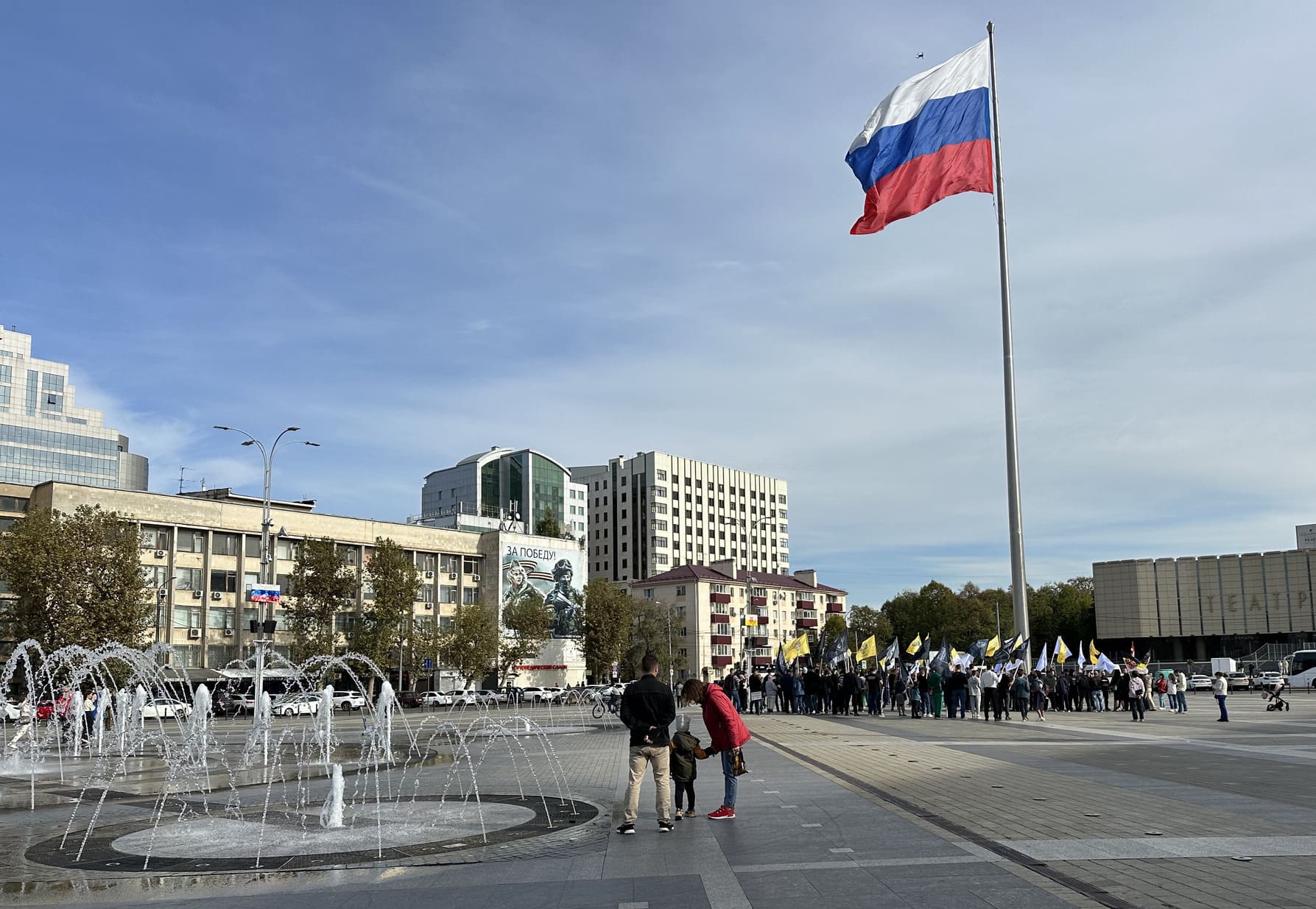 В полдень 4 ноября на главной площади Краснодара несколько десятков человек собрались в центре с имперскими флагами. Они скандировали «Победа будет за нами!», «В единстве сила!» и «Русские вперёд!». Мероприятие организовали общество «Царьград», связанное с православным бизнесменом и владельцем одноимённого телеканала Константином Малофеевым, а также общественные объединения «Русская община» и «Северный человек». Последняя организация создана рэпером-националистом Мишей Маваши.