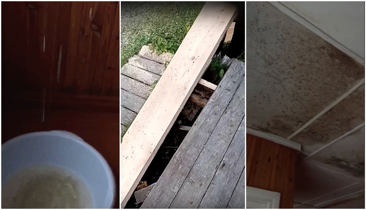 Наталия Слепченко уточнила, что эти же рабочие «подделали крылечко — посадили на саморезы». Потом они осмотрели и крышу и сказали, что «там очень плохо всё, надо полностью менять кровлю».