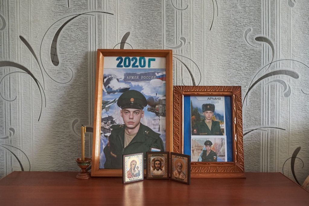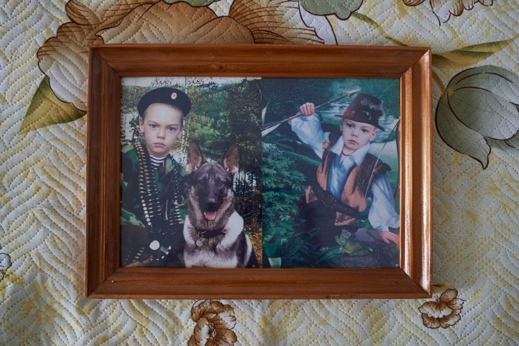 В комнате Андрея ничего не изменилось с момента его последнего приезда в отпуск. Кровать, шкаф, стол, компьютер… На столе младший брат Давид играет в «Лего». На стенах — много фотографий, в основном портреты Андрея в разном возрасте, начиная с детского сада. Почти все — в военной форме.
